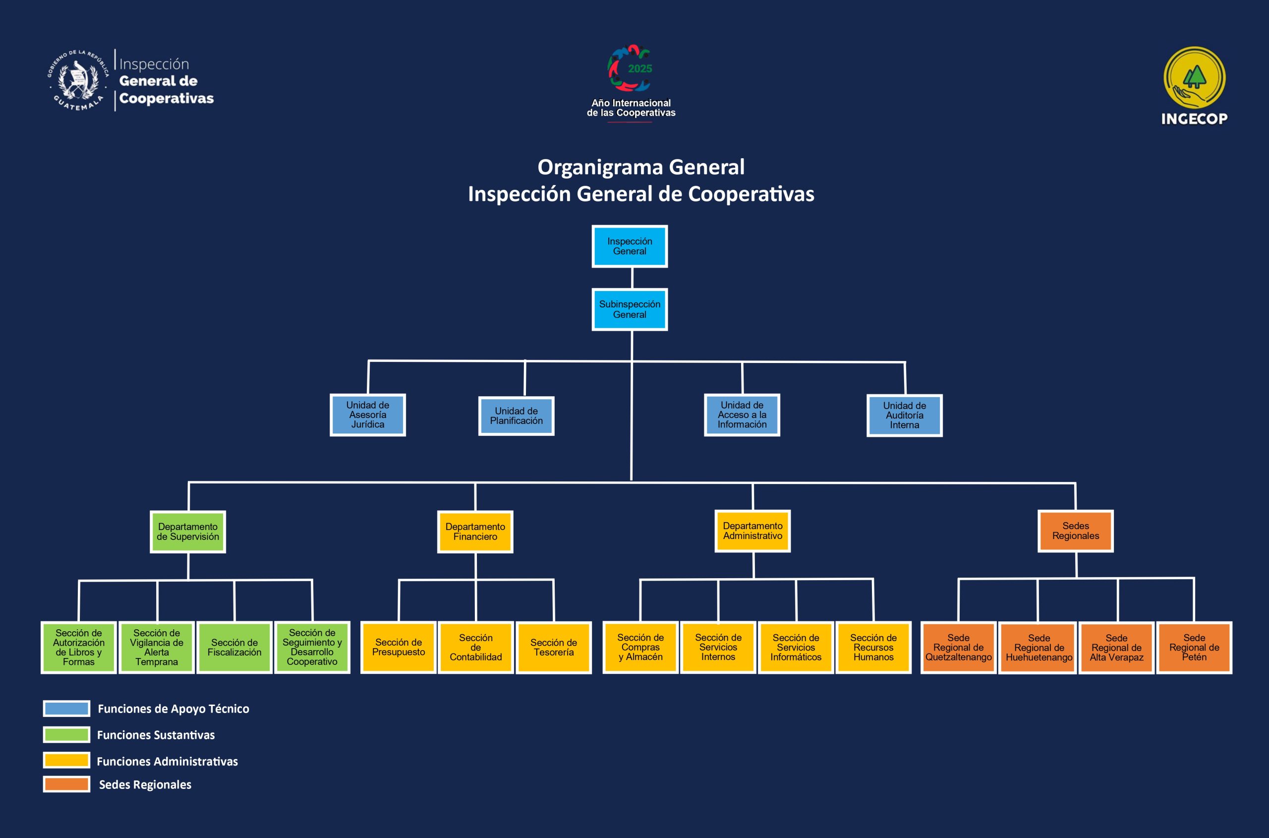 BASE LEGAL INGECOP DECRETO 82-78LEY GENERAL DE COOPERATIVAS ACUERDO GUBERNATIVO 07-79REGLAMENTO DE LA LEY GENERAL DE COOPERATIVAS ACUERDO INTERNO IGC-003-2024 REGLAMENTO ORGÁNICO INTERNO DE INGECOP ACUERDO IGC-011-2024 ORGANIGRAMA INGECOP PACTO COLECTIVO DE CONDICIONES DE TRABAJO REGLAMENTO INTERNO DE PERSONAL ORGANIGRAMA GENERAL